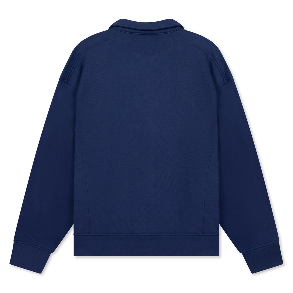 Medieval blue half zip with a slightly oversized fit in a heavy weight cotton. Ribbed hem & cuffs. Comfort Club Laurel embroidery to the chest.