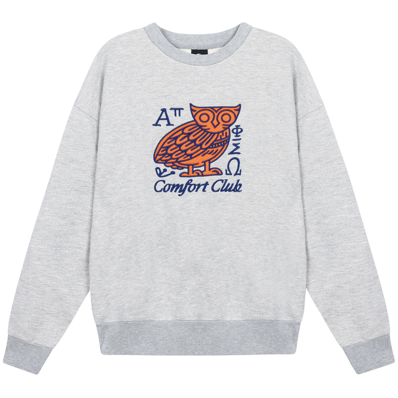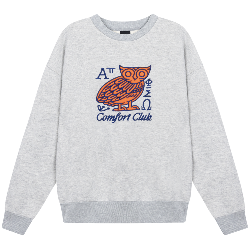 Minerva sweater with a slightly oversized fit in a heavy weight cotton. Ribbed hem & cuffs. Comfort Club Minerva embroidery to the chest.